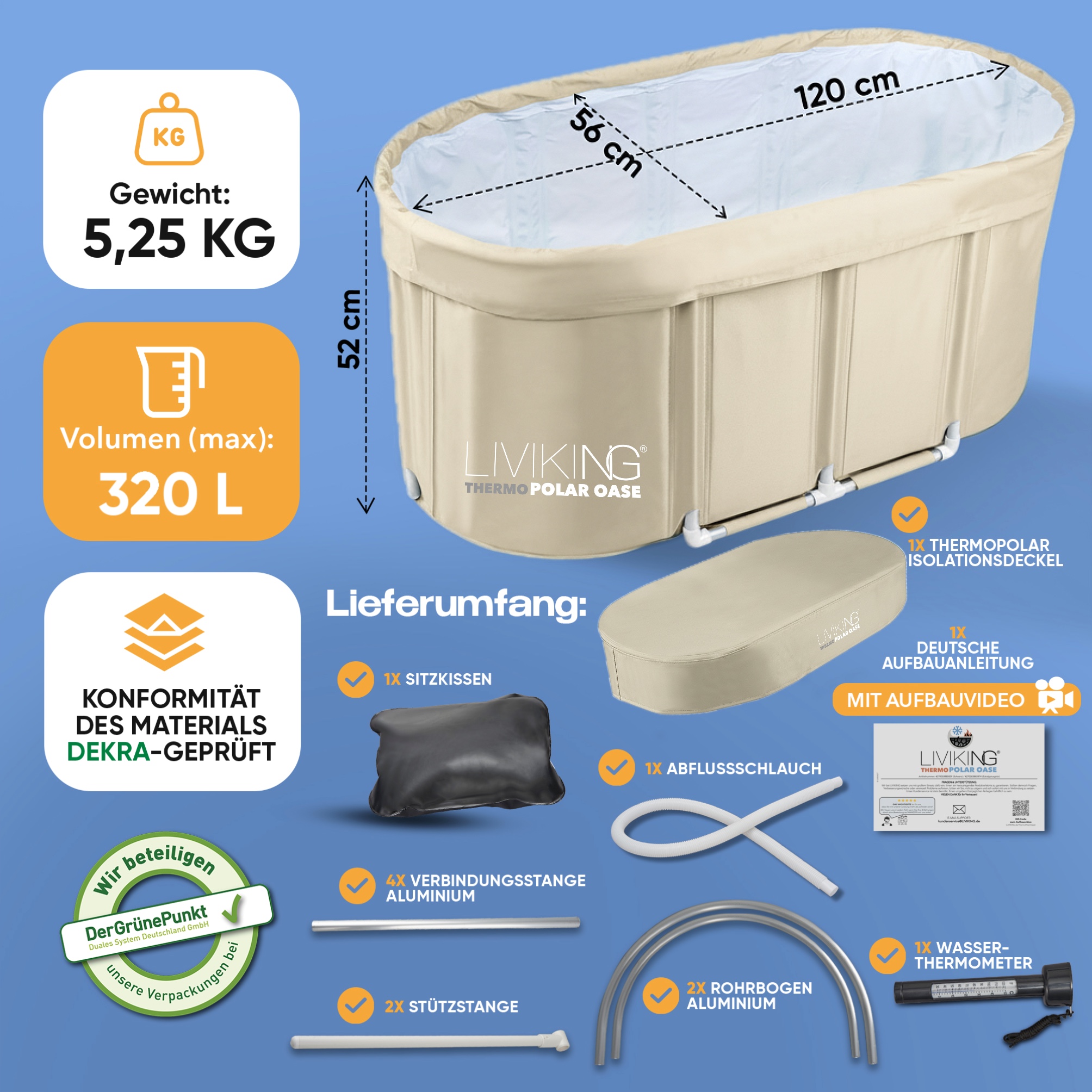 LIVIKING® ThermoPolar Oase – Faltbares Eisbad für Regeneration & Wellness (Sand-Beige)